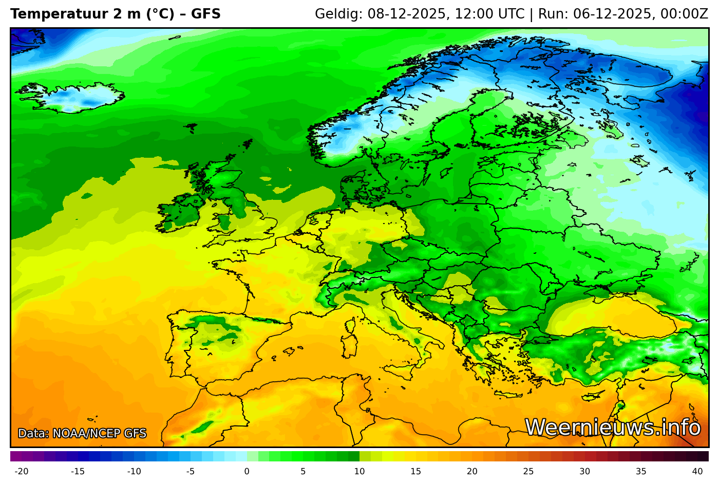 De winter is momenteel ver te zoeken in Nederland en omringende landen. Een actief lagedrukgebied boven de Atlantische Oceaan fungeert als een warmtepomp en voert zeer zachte lucht vanuit het Middellandse Zeegebied aan.