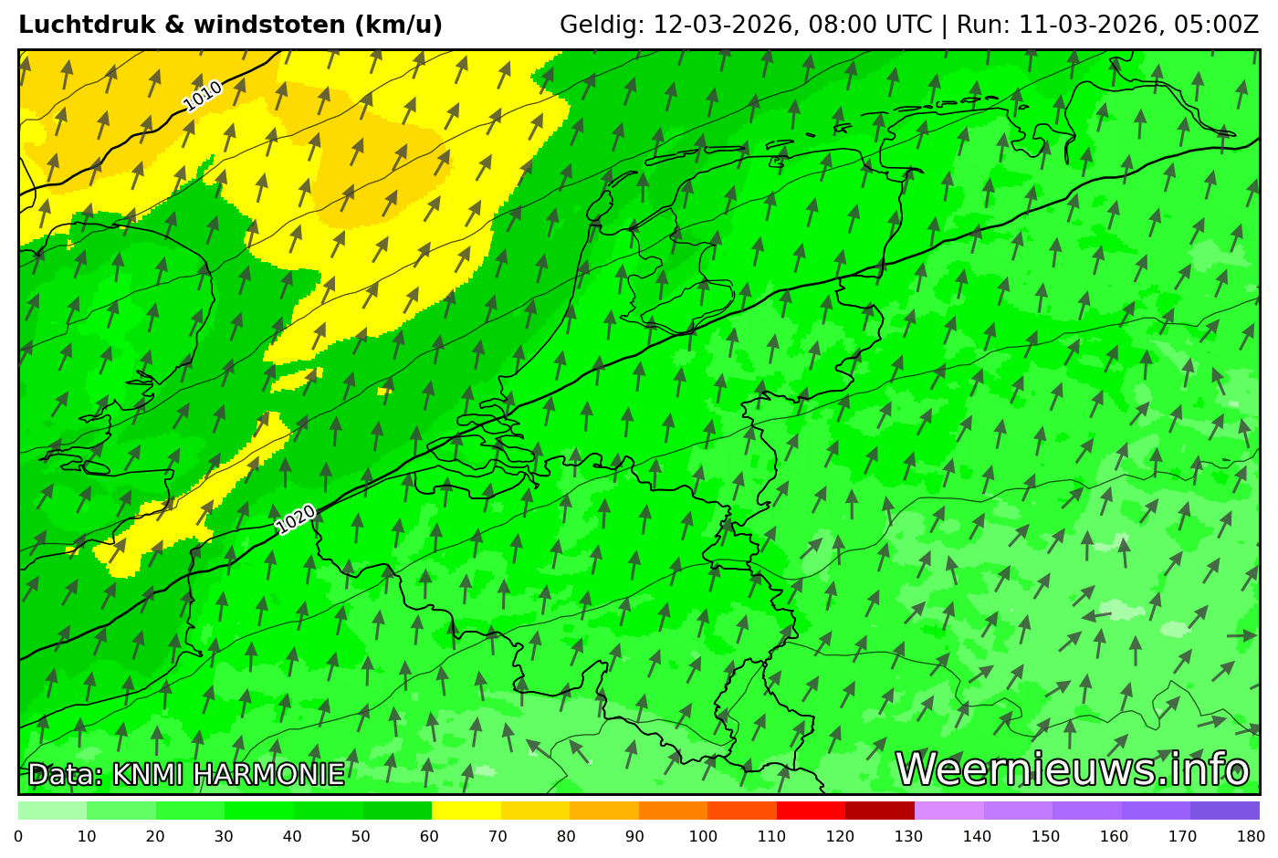 Vrijdag trekt een koufront over het land die gepaard gaat met een nieuw neerslaggebied. Van tijd tot tijd kan het flink door regenen en er staat een onstuimige zuidwestenwind. Na de passage van het koufront neemt de wind flink in kracht af. De zon krijgen we waarschijnlijk niet te zien.